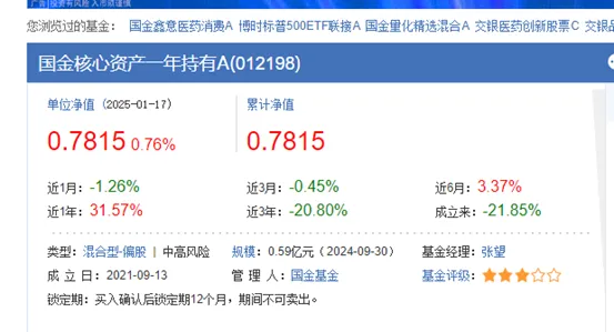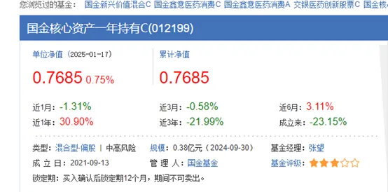 公告 国金核心资产一年持有期混合型证券投资基金2025年第3季度报告