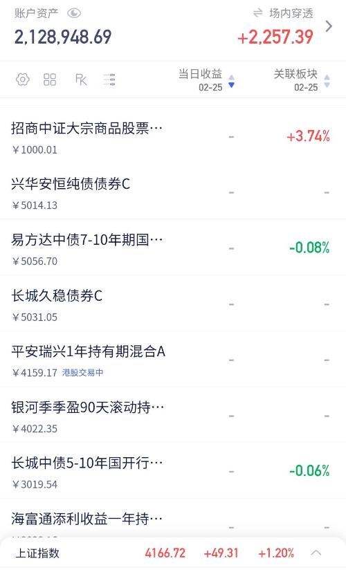 2月25日我的操作:股强债弱,今天加仓制造业和大宗商品两个方向!