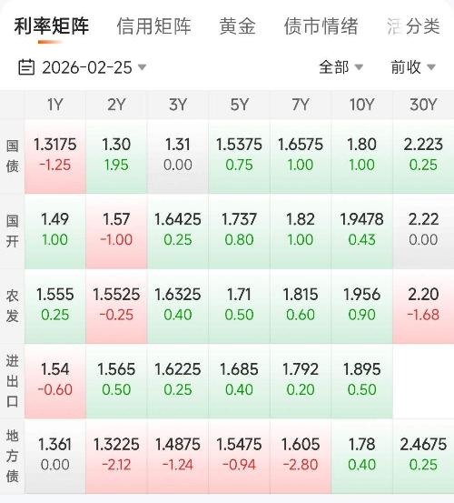 一、债市回顾近期关键词:资金平稳、春节长假、美关税政策受挫春节假期前,权益市场整体呈现防御性特征,成交量在长假前夕出现季节性缩量。债券市场则延续了前期的窄幅震荡行情。在“基本面预期修复”与“宽货币流动性呵护”的多空力量博弈下,长端利率多空双方持续拉锯,短端品种则在央行精准投放流动性的带动下表现相对平稳。从基准收益率的绝对水位来看,10年期国债收益率收于1.79%的窄幅区间内,30年期超长端国债收益...