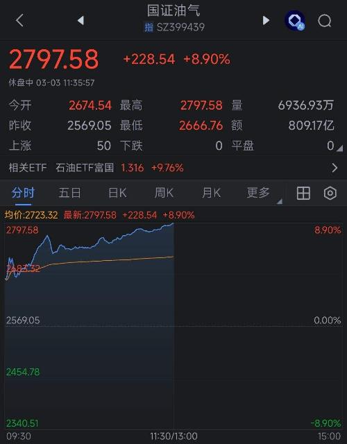 从上周末开始的中东地缘冲突越演越烈,加上霍尔木兹海峡已经被封锁,石油天然气运输受到很大影响,油气相关产品开始快速拉升。在当前的震荡市场里,昨天和今天表现亮眼的资产非油气资源股莫属。但是这个板块怎么去筛选呢?我复盘后$景顺长城国证石油天然气ETF发起式联接基金C(OTCFUND|021823)$让我眼前一亮,发现这支基金就是跟踪国证油气指数。今天国证石油天然气指数逆势上涨的幅度不小,该指数一键打包石...