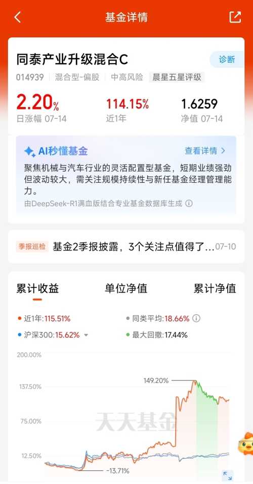 技术迭代加速,人形机器人应用场景不断丰富。同泰产业升级基金凭借对产业的深刻理解,成功捕捉到这波行情,今天估值表现令人振奋,现在布局还来得及分享产业红利。$同泰产业升级混合C$