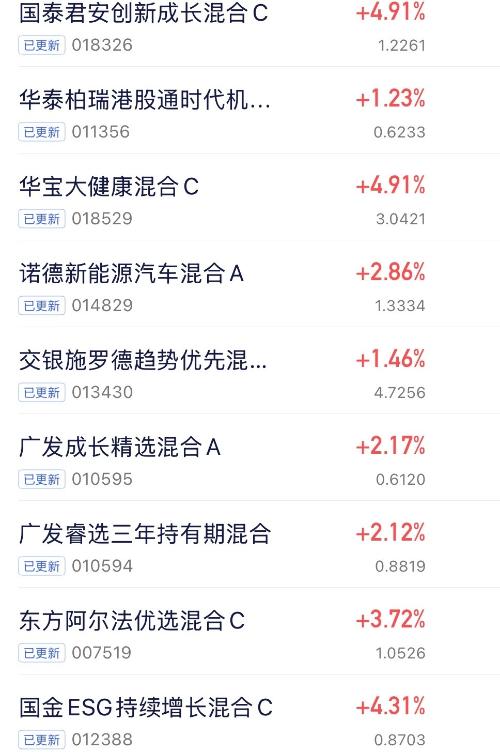 今日市场分化明显,权重基金承压,成长类基金表现相对活跃,该基金半年复权净值增长率达51.99%,展现较强弹性。 $国泰君安创新成长混合发起C$今日上涨4.91% $华宝大健康混合C$今日上涨4.91% $诺德新能源汽车混合A$今日上涨2.86%
