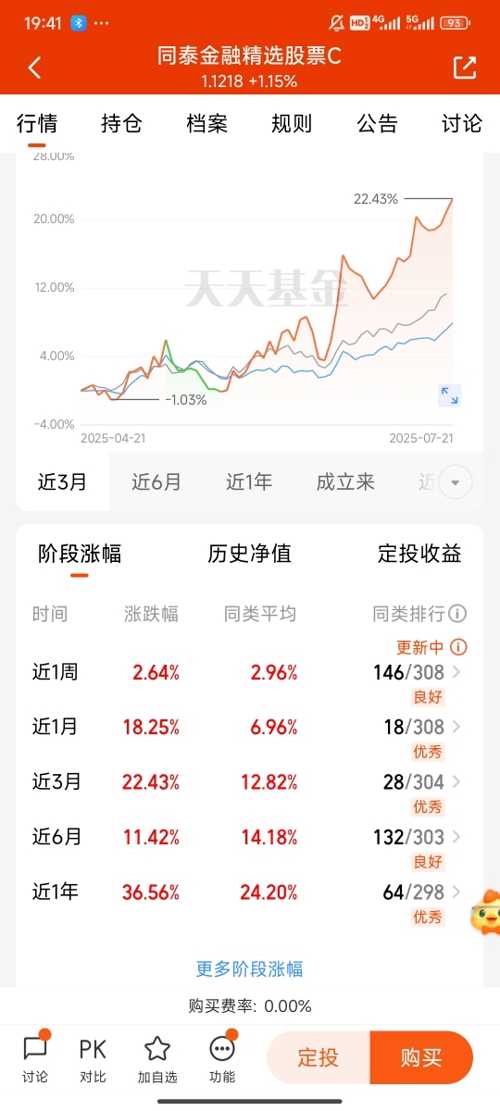 快看快看!同泰金融精选股票C(013491)四连涨,金融精选行情好得让人尖叫。一门心思搞稳定币值,布局龙头券商眼光毒辣,今日今日涨幅1.15%。去年冠军基强势回归,小而美调仓速度快,现在上车还能跟上趟$同泰金融精选股票C$
