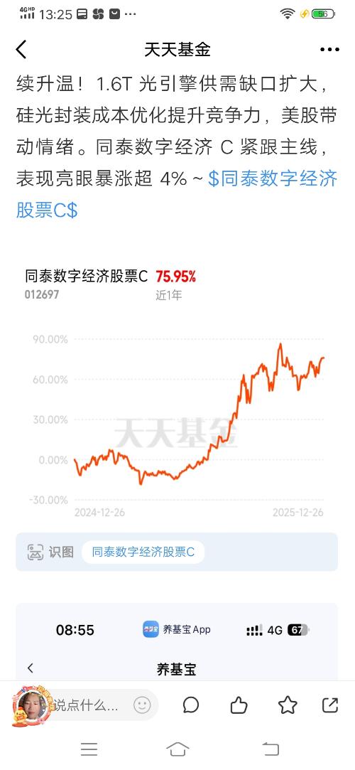 CPO板块昨日大涨超3%,算力热潮持续升温!1.6T光引擎供需缺口扩大,硅光封装成本优化提升竞争力,美股带动情绪。同泰数字经济C紧跟主线,表现亮眼暴涨超4%~$同泰数字经济股票C$ #青禾创作计划#