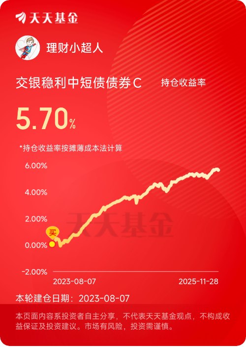 $交银稳利中短债债券C$波动小,近期市场震荡表现挺稳。挺适合稳健投资者青睐#晒收益# #11月我的投资总结!#