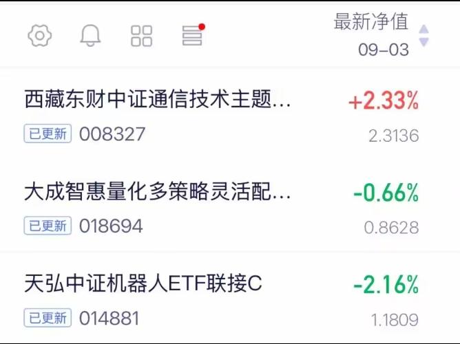 通信技术表现好给力呀,三大指数分化,大盘走弱,各大板块回落调整,通信技术逆生长翻红,可喜可贺,持有的$东财通信C$今日涨幅+2.33%,漂亮哦,目前持有收益相当不错,只可惜当时买少了点,后期给机会继续加大仓位这个重仓CPO光模块,指数不飘移,成分股清楚,还是7免,继续看好 $大成智惠量化多策略混合C$今日回调0.66% $天弘中证机器人ETF发起联接C$今日回调2.16%,要加油了