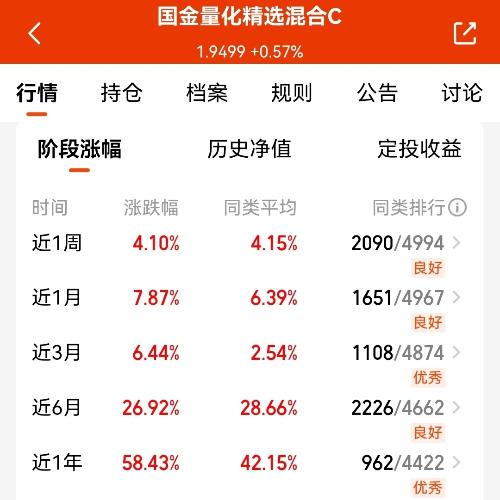 今天看来$国金量化精选混合C$又继续吃肉,限额放开了,节前+了不少,节后4天都吃肉