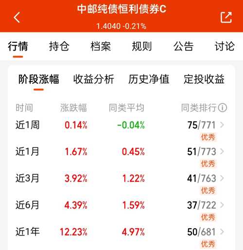 混债还是喜欢$中邮纯债恒利债券C$,抗跌能力强,只投可转债+纯债,管理费也是最低档的,各阶段收蛋优秀