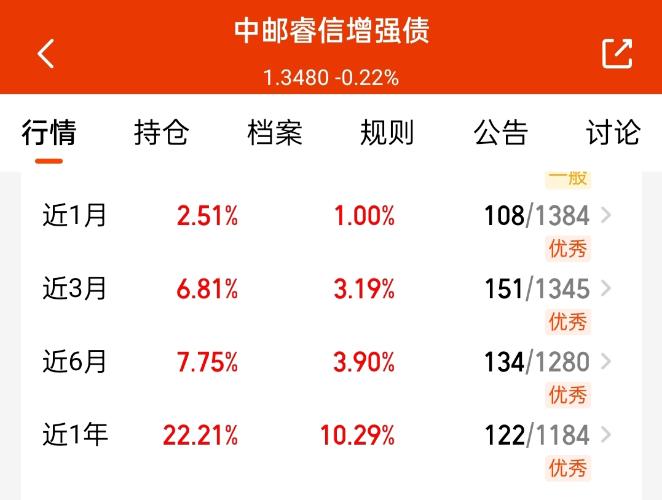 混债也可以多配置分散风险,还拿了些$中邮睿信增强债$,主投信用债+可转债+股票的,回撤控制得超好,收蛋也优秀