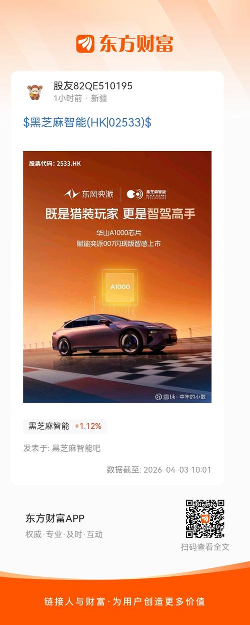 $黑芝麻智能(HK|02533)$黑芝麻智能的芯片从来对标的不是高端车型高端市场,黑芝麻智能的定点和出货方向都是中低端市场,这也是市场量最大的地方,从近期的收购也能发现他的目标方向和拓展方向。大家把蛋糕一起做大,一起砸钱突破,不远的未来智驾能用在10万元车型以下后,你觉得受益的是谁?黑子说话