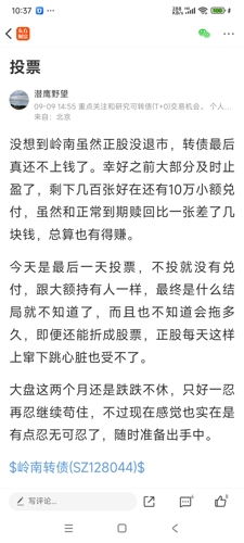 $山鹰转债(SH110047)$山鹰转债机构早已经撤出,今天的大跌耐人寻味。固然有其他低价债也崩的风险。今天的跌幅隐含资金筹集有挫折。从提质增效来复盘:1、马鞍山国资收购没有任何下文。20亿没回来。主要减分项。2、中报看经营性现金流良性,应该能回笼一部分资金,但未必超预期。3、北欧纸业股权出售,没有进展,也在预期内。4、大股东买入转债,100以下不买入。预期内不加分不减分5、高管转债增持,买了...