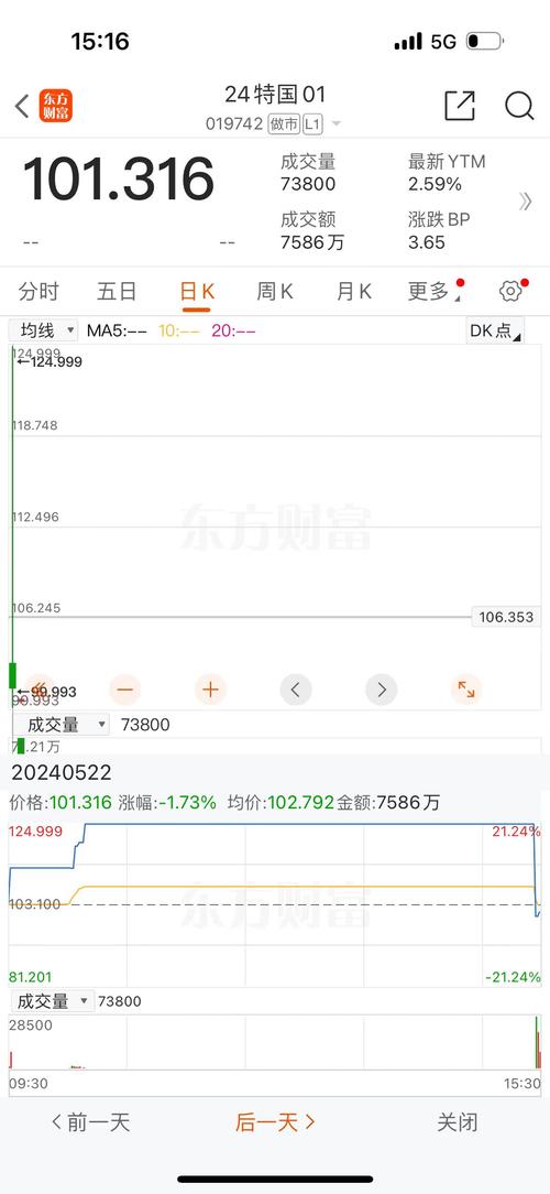 国债市场的新动态在金融市场上,新发行的超长期特别国债“24特国01”和“特国2401”在上交所和深交所的上市引起了极大的轰动。这些记账式国债一亮相便展现出了惊人的活力,特别是“24特国01”,在开盘后不久就迎来了价格的剧烈波动,一度触发了熔断机制,并在复牌后继续攀升至25%的惊人涨幅,尽管最终收盘时涨幅回落至1.32%价格波动的背后这种剧烈的价格波动,不仅让投资者体验到了市场的激情,也暴露了投资的...