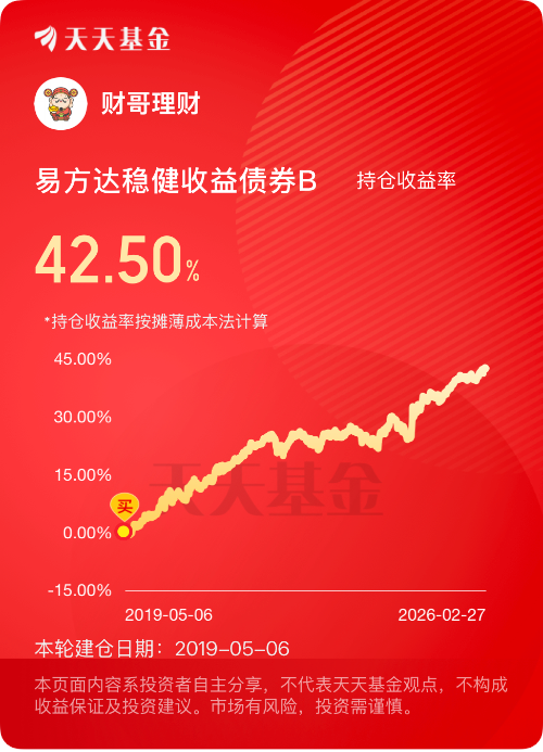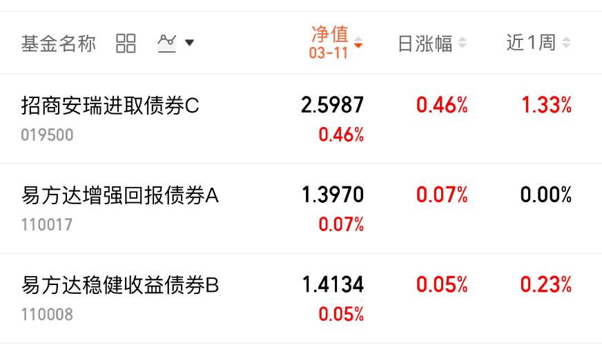 偏债基金能兼顾短期与长期,很适合普通的我。短期可以赚点零花钱,长期能慢慢稳健增值,实用性很强。上周股市波动比较大,不少固收+产品依然保持正收益,在震荡市里表现更稳,风险相对可控,长期拿着也更安心。$招商安盈债券C(OTCFUND|012233)$近1周收了7个蛋,$易方达稳健收益债券B(OTCFUND|110008)$碎了28个蛋,$中欧可转债债券C(OTCFUND|004994)$碎了196...