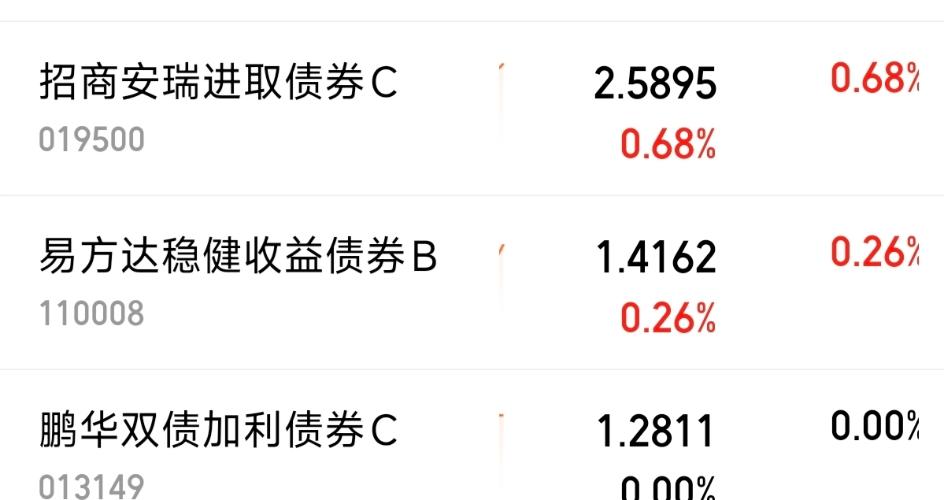 今日债市现明显分化,国内在宽松流动性下表现平稳,但国际局势趋紧引爆全球避险情绪,美债收益率大幅上行。市场波动虽大,有些固收+却一如既往出色,昨天大多数都收获了正收益。$招商安瑞进取债券C(OTCFUND|019500)$:昨日收46个大蛋!$易方达增强回报债券A(OTCFUND|110017)$:昨日收7个蛋!$易方达稳健收益债券B(OTCFUND|110008)$:昨日收5个蛋!把底仓放在...