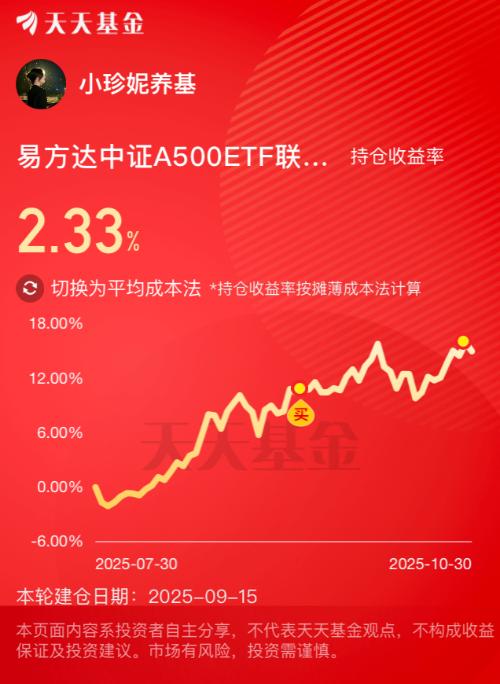 今天虽然大盘有所调整,但是随着沪指再创新高,行业热点不断的切换,我准备布局一波A500$易方达中证A500ETF联接C(OTCFUND|022460)$,把它当作底仓配置,跟随行情走势,期待后续带我吃肉呀!#能源金属概念狂飙!锂电大周期来了?##美联储再次降息!12月降息与否难料#0$海富通沪深300指数增强C(OTCFUND|004512)$$易方达沪深300量化增强(OTCFUND|110030)$...