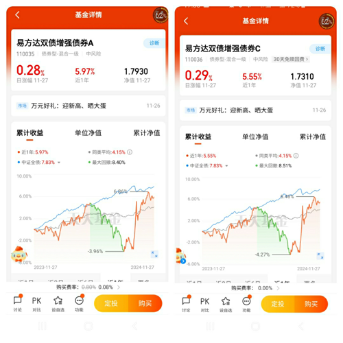 #晒抱蛋收益##晒好基聊心得#我选择$易方达双债增强债券A$,今天收蛋28个。本基金是一只集信用债、可转债以及利率债的混合型债基。近1年收益率达到5.97%,非常稳健。不惧市场的波动,每天一点点的上升,一年下来收益率也非常可观,最主要不用担惊受怕。债基具有压舱石的作用,是家庭理财的一个最好选择之一。资产均衡配置,债基少不了。@易方达基金 $易方达双债增强债券A(110035)$$易方达双债增强债券C(110036)$...