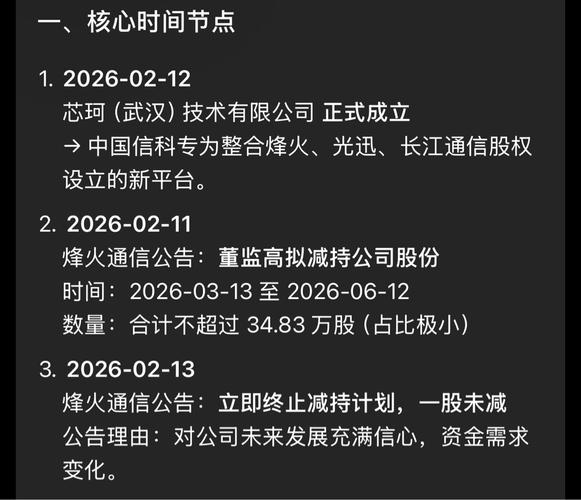 $烽火转债(SH110062)$紧急加更一条信息 我看到了一个奇怪的事件,不要去看他们怎么说!我这个可以明确芯珂(2.12)成立,是中国信科启动烽火系股权整合、资产做强的明确信号;高管提前知晓后续重大利好(收回藤仓、并表增利、估值重塑),为维护市值、配合国资战略、避免卖在底部,才在2.13紧急终止减持! 很明显年报肯定有大动作要执行了!启动后我要加更了!