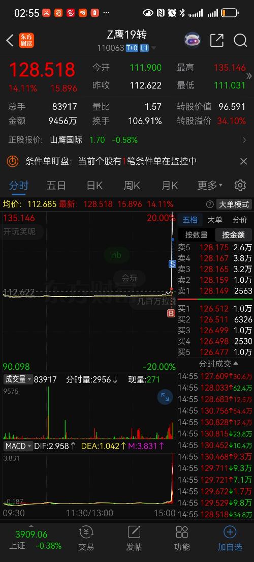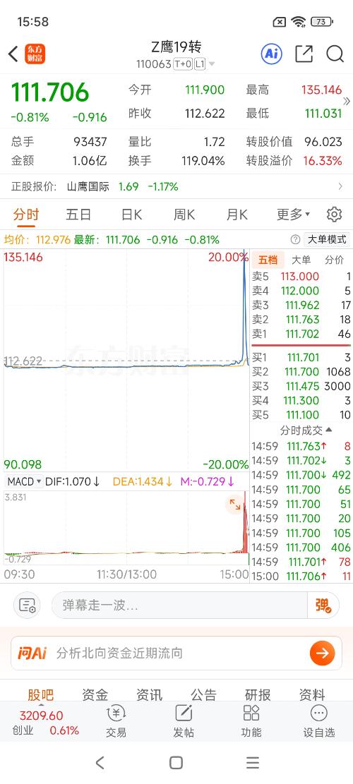 $Z鹰19转(SH110063)$什么情况,涨停都来不及抛就下来了。
