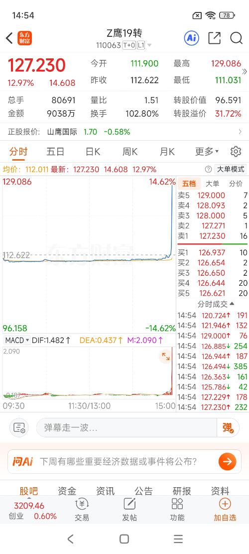 $鹰19转债(SH110063)$就这还有1.5%的溢价,你不卖明天还要亏1.5%