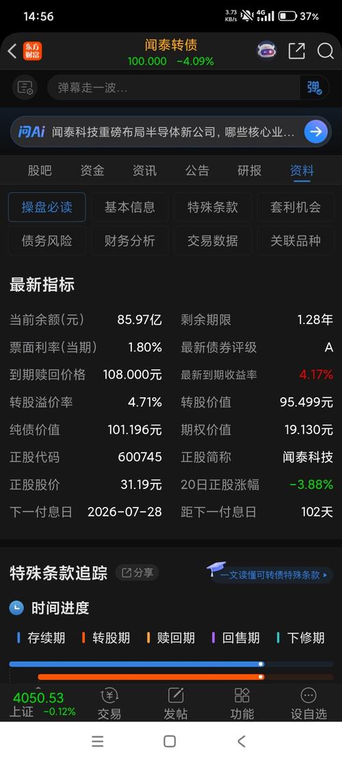 $闻泰转债(SH110081)$恐慌后的这个坑位已经很安全了,现在这溢价率,只要公司想化债,直接可以发个利好,直接封板正股,保证几天这个可转债剩不下多少。