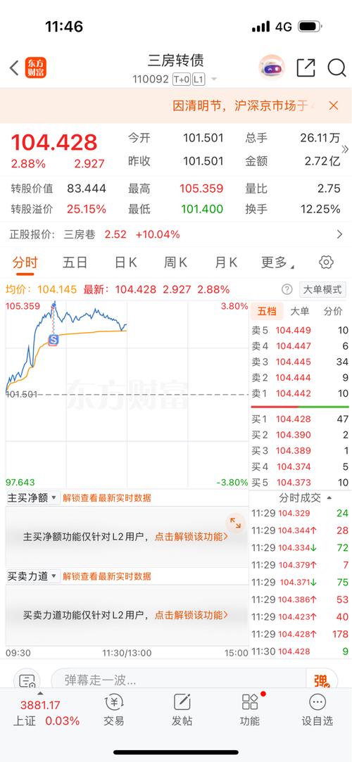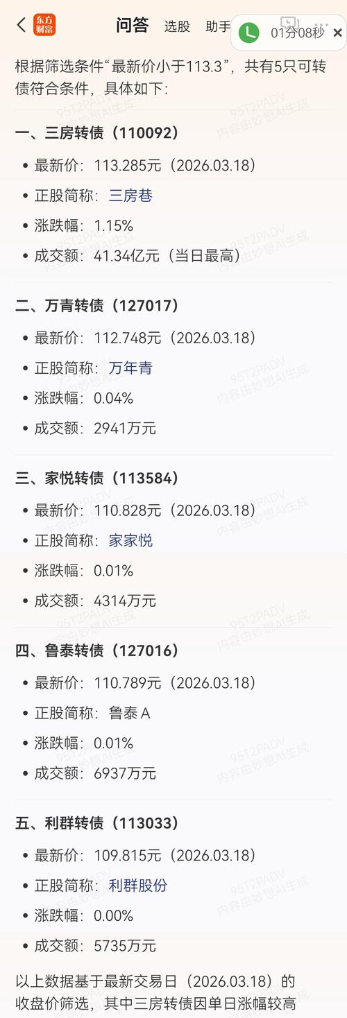 $三房转债(SH110092)$$三房巷(SH600370)$ 这个债被盯上了,成交了40多亿,一共20多亿余额,换手150%,其他可转债你们看看换手,不是下杀让你交筹码就是让你们化债转股,不然闲的,不卖就是不交筹码,不转股就是不化债。 研究技术的同时不要忽略大概率事件,113.3以下的转债只有5只,且只有三房有5个点的溢价。捡到宝了就拿住了!连离强赎都还早。你们看看可转债强赎都是大概率到不了期就...