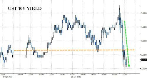 财联社(上海,编辑潇湘)讯,在周三这个美联储议息之夜,美国金融市场果然迎来了近来少见的动荡。尽管当天公布的美联储货币政策声明,显露出对未来经济前景更为乐观的评估,但美联储主席鲍威尔在会后的新闻发布会上却依然“鸽声嘹亮”。受此影响,美债收益率在纽约时段触及两周高位后急挫,全天小幅下跌。行情数据显示,10年期美债收益率周三尾盘跌1.1个基点报1.615%,在美联储决议公布伊始曾一度刷新两周高位1.6...