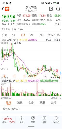 郑重提醒!今天最后一天,3点收盘前必须转股或卖出,切记,要在收盘前,要在收盘前转股或卖出,不要等到收盘,收盘后就100多点赎掉了,如果有被套的,又不急的,可以转股,滨化业绩不错,转股做中长线还是有机会的!以上纯属个人看法,一切自己作主!