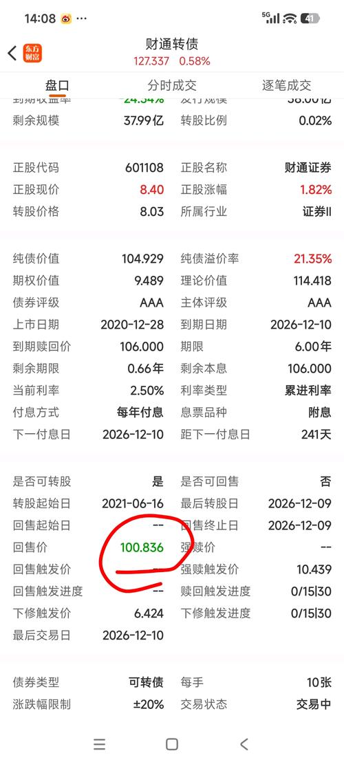 财通证券到期回购价钱是:100.83元,现价127.33元买入财通转债的?大胸入水了???亏损百分之二十五左右????