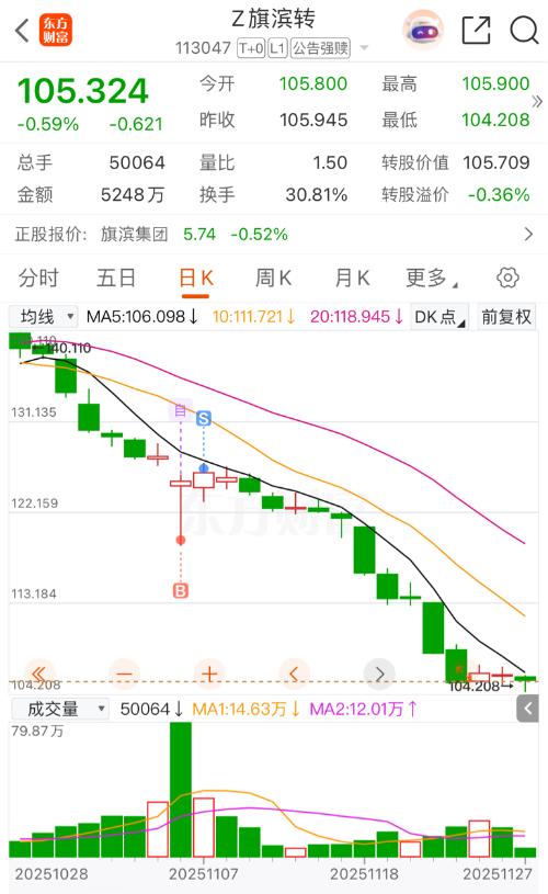 $Z旗滨转(SH113047)$挺有规律的,一天转1亿多的债