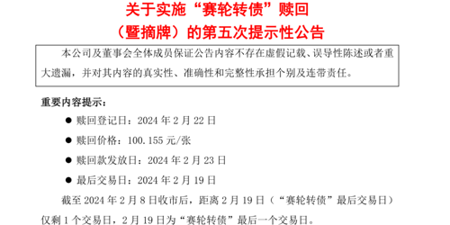 公告 601058:赛轮轮胎关于实施“赛轮转债”赎回(暨摘牌)的第五次提示性公告