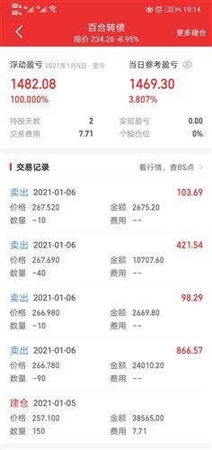 1月6日是百合转债落幕的日子。伴随着百合转债上市后的起起落落,我从120多开始炒作,经历过+30%临停的喜悦,而且是隔夜委托的临停卖出成交价,也成为当日最高成交价。总体上百合转债只要拿得住都大概率赚钱,总共7.5万的收益,是可转债中赚得最多的一只,因此留贴怀念!