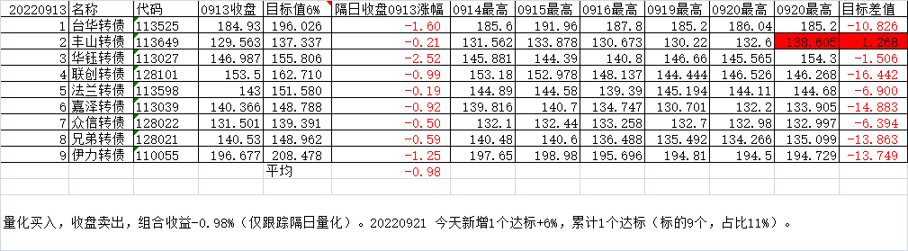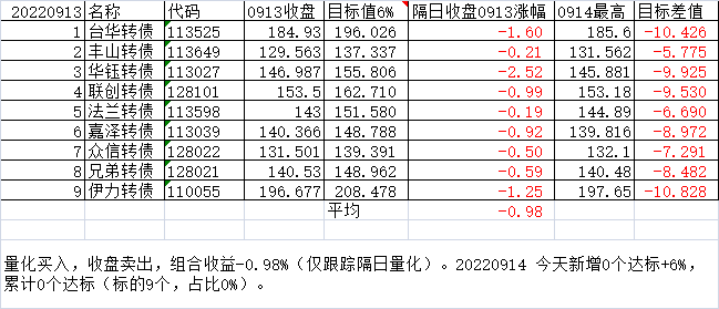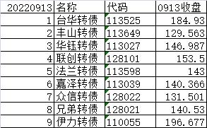 每日尾盘可转债选股(短线目标)20220913