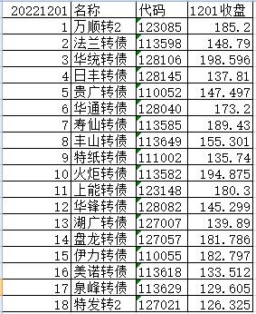 每日尾盘可转债选股(短线目标)20221201