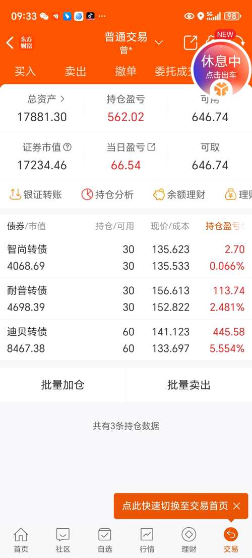 我昨天转股了,今天怎么盈利一万多?