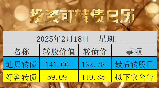 原文发送于昨日晚间。18日为迪贝转债最后转股日,如果投资者忘记转股操作,将被100.98元赎回,亏损28%以上。好客转债满足下修条件,公司提出下修议案,利好转债,详见下修信息列表。距离力合转债提议下修已经有7天,期间多只转债满足下修,都没有提议下修;现在好客转债仅剩5.4个月到期,转股价值仅为59元,如果不下修,大概率到期还款,正是在这个还款压力下,公司不得不提议下修。本文观点和原理参见《价值可转...