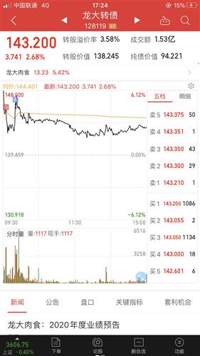 第十五个交易日,昨天看好的至纯守一天没起来转股回了760多元。看好它正股还有一拉,所以早上就这一拉赚了2000多跑了,早盘拉太快往往就是陷阱。后面分仓做了塞意和龙大。都没买在最低点。龙大解套了去天铁,赛意就没解套过。天铁最近很活跃,原来跌6个点也拉了快一个点出一半,下落还没到位又加进去,导致由赚变亏。后面看跌破168的趋势赶紧割了。其他债都在高位,不敢进。只能进溢利想博一下,一来这个月这货坑了我不...