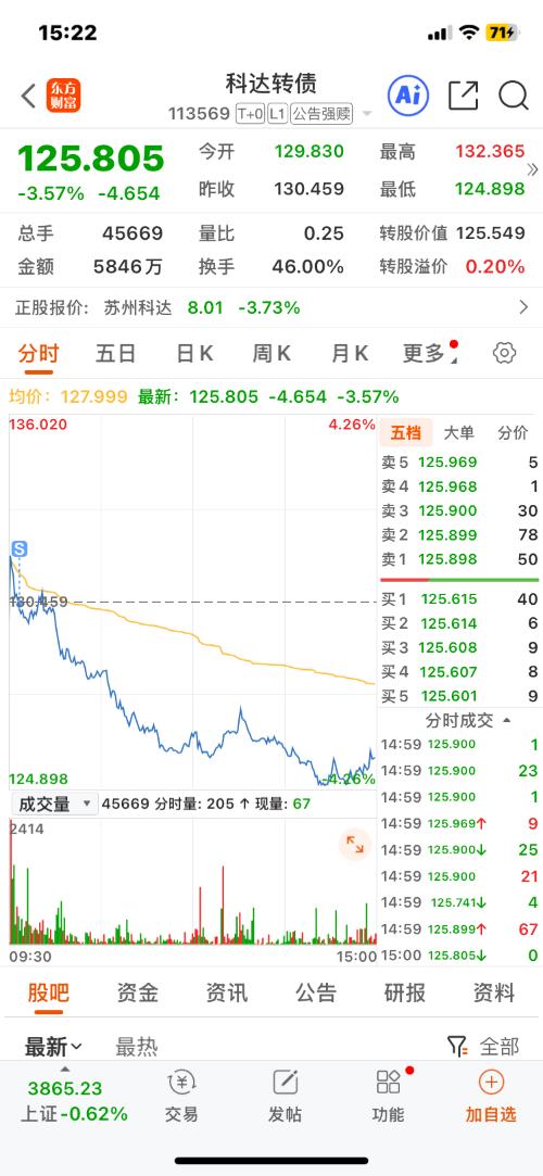 $科达转债(SH113569)$ 125.805*0.99=124.5 125.805*0.98=123.2 125.805*0.97=122.0 125.805*0.96=120.7 125.805*0.950=119.5 124.5——123.3——122 121.0——120 ——5笔低吸套利