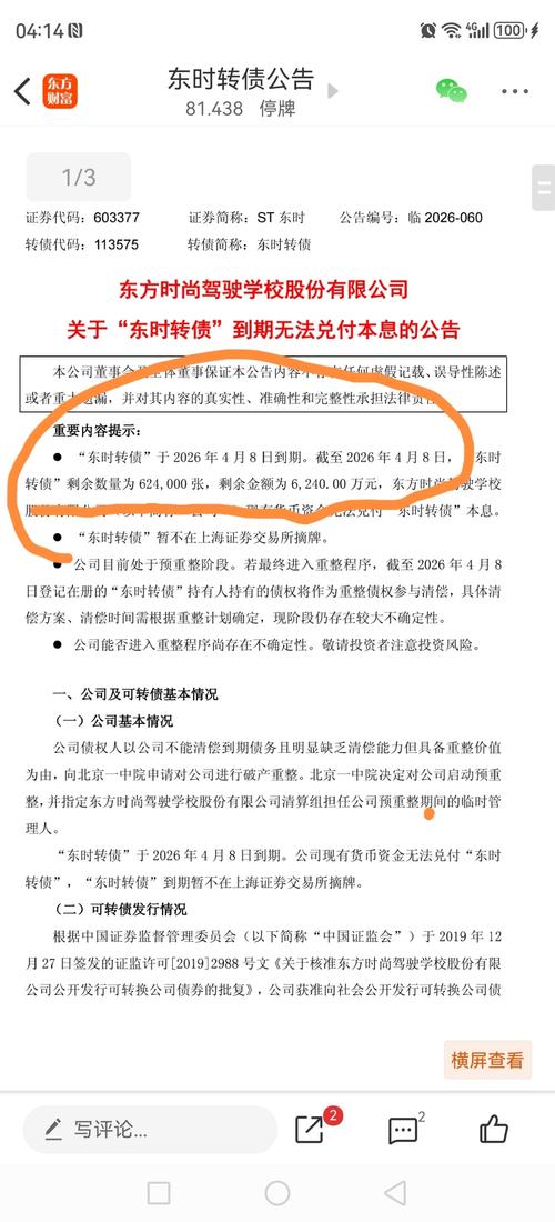 公告 东方时尚驾驶学校股份有限公司关于“东时转债”到期无法兑付本息的公告