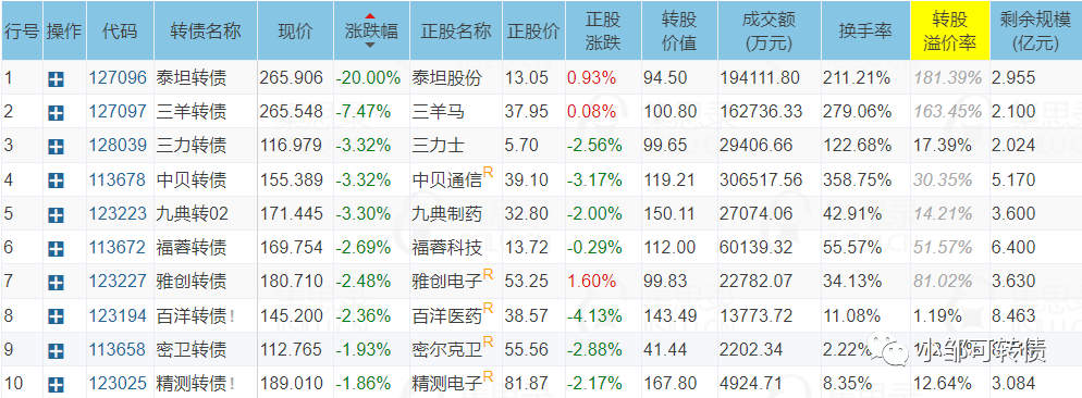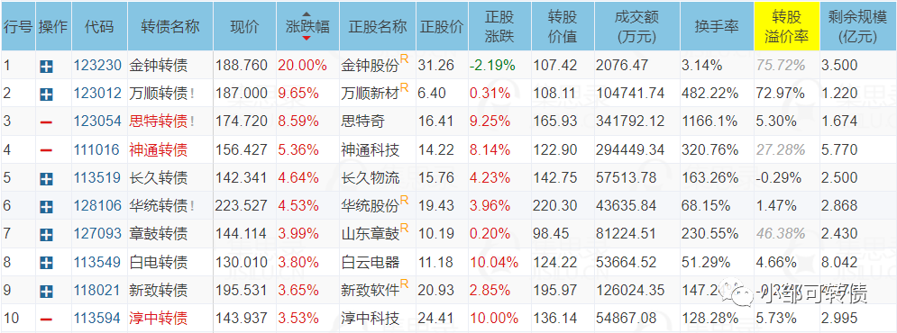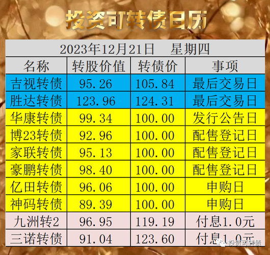 原文发送于昨日晚间。21日为吉视转债最后交易日。当前转股价值仅为95元,转债价为105.84元,比税后赎回价104.8元高1元,所以卖出最划算。21日为胜达转债最后交易日,如果投资者忘记操作,还可以在26日最后转股日之前转股卖出。华康转债宣布发行。预测中一签的概率为1.3%~4%。抢权配售的投资者获得收益率为4.19%。配售收益率上升到7.55%。详见同日发布的《糖醇专家13亿华康转债申购早知道》...