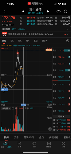 $Z淳中转(SH113594)$今天最后一天了,无论如何要走,末日债前几个都是低开高走,不知道一个债庄怎么样。