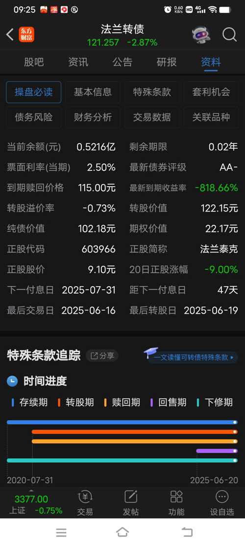 公告 关于实施“法兰转债”赎回暨摘牌的第四次提示性公告