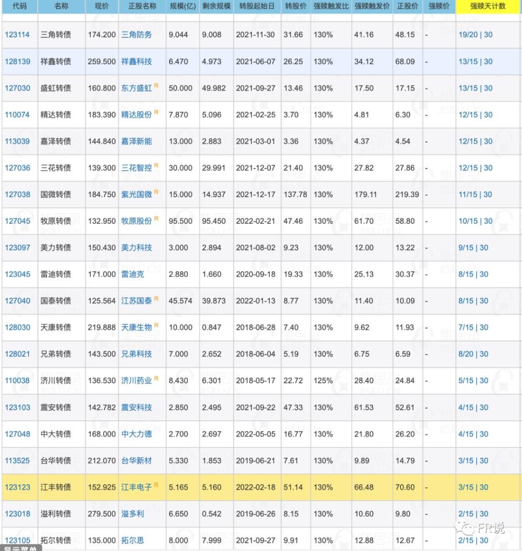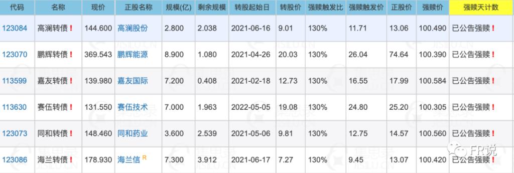 【停止交易】尽快卖出/转股,注意风险:嘉友转债,赎回日7.25,强赎价100.584鹏辉转债,赎回日7.28,强赎价100.39赛伍转债,赎回日7.29,强赎价100.305同和转债,赎回日8.15,强赎价100.56高澜转债,赎回日8.19,强赎价100.49海兰转债,赎回日8.23,强赎价100.42【强赎已定】(利空转债,尽快卖出or转股)【强赎数日子】(投资者需关注,避免踩雷)【不强...