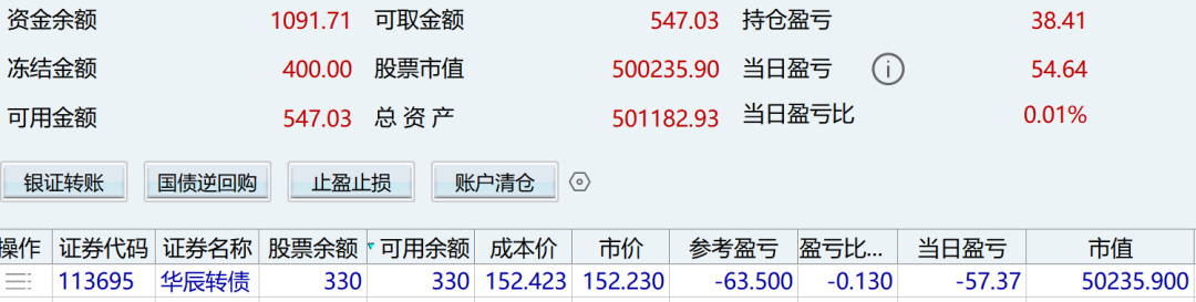 +38猪之一手再现,郁闷20260424 复盘 今日大军50.1w,今日增补+38。 苏利强赎计数14/30日,正股继续下跌,转债不跌反涨,就早上跌了几秒钟。今天预案是早上抄个底,正股是按预期跌了,但转债太强,尾盘都拉到137,给我看无语了,现在市场资金是真的饥渴,对于确定性高的机会那是饿狼扑食。也不怪打新资金都在万亿规模,钱太闲了! 华辰一季报暴雷,利润下跌99%多,这数字笑死了,净利润13万,...