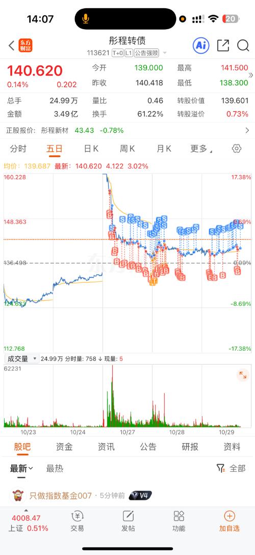$彤程转债(SH113621)$ 每天做差价降低成本,希望这周能解套