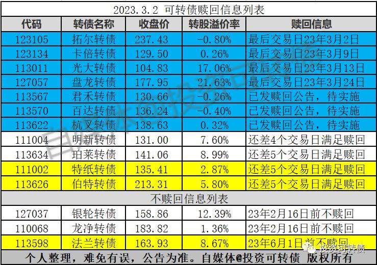 3只转债赎回,2只转债可能赎回