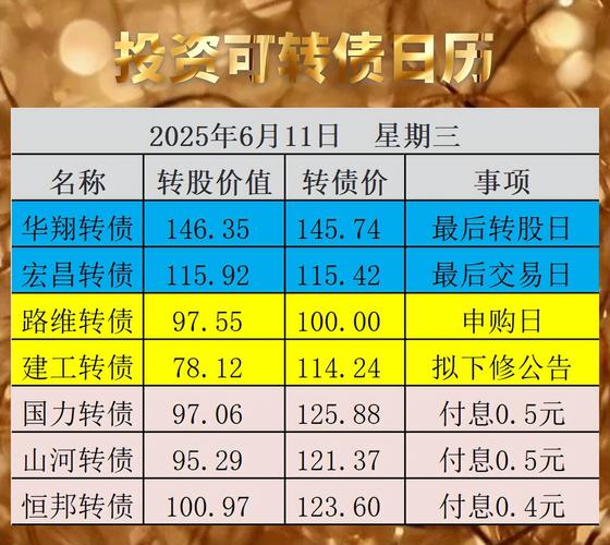 原文发送于昨日晚间自媒体。 11日为华翔转债最后转股日,如果投资者忘记转股操作,将被100.71元赎回,亏损30%以上。 11日为宏昌转债最后交易日,如果投资者忘记操作,还可以在16日最后转股日之前转股卖出。 11日路维转债发行,喜欢申购套利的网友不要忘记操作。参见《先进封装6亿路维转债申购早知道》。 建工转债满足下修条件,公司提出下修议案,利好有限,详见下修信息列表。 12日国力转债、山河转债、...