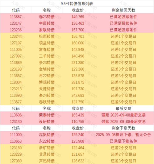 一、可转债核心公告:下修提议与赎回倒计时双线并行 1.下修动态:蓝帆提议下修,垒知明确不调整 蓝帆转债:因连续30个交易日中15日收盘价低于转股价85%触发条款,董事会已于9月4日审议通过下修议案,将提交股东大会表决。市场预计转股价或下调至4.5-4.8元/股区间,定价规则为“不低于股东大会前20日均价/前1日均价(取高者),且不低于每股净资产和面值”。 垒知转债:虽满足相同下修条件,但董事会决定...