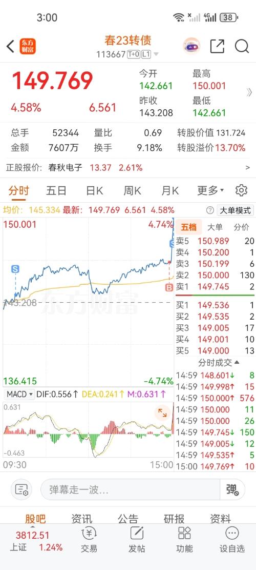 $春23转债(SH113667)$不知道发生什么,几分钟给我3个点,有点懵