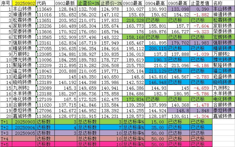 尾盘可转债(短线),每日尾盘14:40后,通过选债公式自动选择一批可转债标的,一周内大于3%收益的概率(五个交易日,以最高价计算)。盘中采用其他方式公布,本平台栏目不便及时发帖。为了计算方便,盘后以当日收盘价作为计算初始数据。 #机器人板块爆发!如何掘金产业链?##机构看好固态电池!产业迎爆发期##2104元!高盛上调寒武纪12个月目标价#...