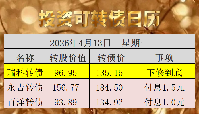 原文发送于昨日晚间自媒体。 瑞科转债下修议案获得通过。公司宣布转股价下修到21元,下修到底了。下修后,转股价值上升到97元。公司和持有人双赢,皆大欢喜! 值得注意的是,闻泰转债之前下修到底,但公司业绩大亏,有评级下调可能,转债反而逆正股大跌,皆大欢喜成空;瑞科转债正股除2025年业绩小亏之外,没有大的硬伤,大概率皆大欢喜会成真吧! 14日永吉转债、百洋转债将发放利息,投资者注意查收;同时网格交易将...